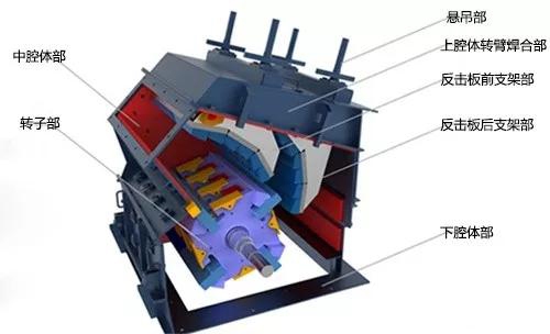 颚破和反击破明显的差别就是结构和工作原理的不同,前者的工作方式为曲动挤压型,物料在动颚和定颚组成的破碎腔内被挤压破碎;后者采用冲击破碎原理,物料在转子(板锤)和反击板之间被反复撞击破碎。