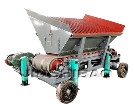 实现连续均匀的给料。若因含水量大,粘在带上的物料无法自动卸下,由改向滚简下方