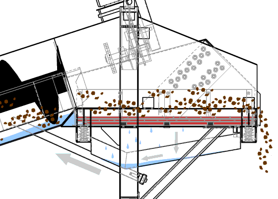7、排料口堵塞故障原因:这是洗砂机在作业中容易出现的问题,大部分的原因是由于洗砂机的矿浆中的砂石粒度过于细,单次的给料量又突然加大,导致出料口淤积物料。